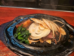 ステーキ専門店です120gssセット お箸でお肉切れますよ サラダ このスープが何とも言えない癖になる味 後はゆかりご飯🍚が付いてますランチみたいなディナー美味しかった👍 ご馳走様ですo(^o^)o