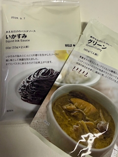 無印のいかすみ🦑💛 いかすみパスタが大好きで常にストックしとる🍝 グリーンカレーは気になって買ってみた🌶🌶 食べるの楽しみ😋!