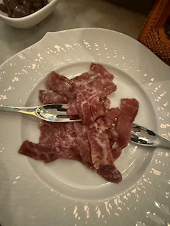 ゆかです😉 お客様のリクエストでフレンチへ ここのお店はめっちゃ久々〜 カルパッチョ MIXサラダ🥗 カニのキッシュとバゲット🥖 みょうがピクルス 黒毛和牛のステーキ プリンがなかったので 牛乳のジェラート どれも美味しかったです❤️ ごちそうさまでした😋 2連休はゆっくり過ごしたいと思います😙 おやすみなさい😘