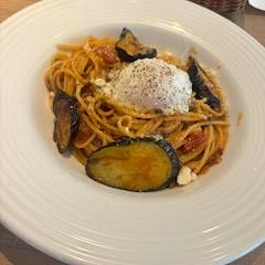 こんばんは! いつも夕方に起きるのに なかなか寝れず諦めて ランチに🫶 美味しかったです🤤 なすびが好きすぎる🩵
