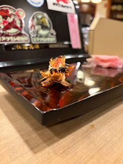 節分イベントの日 半分肩出しながら 寒い寒い言って 焼酎お湯割り呑みながら お寿司いただいた🍵🍣 絶対誰か会うだろうなと思ってたら 青鬼さんいてました(笑) UFOキャッチャーでとってきてくれた🩵🤍💛