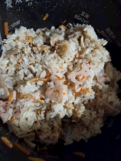 根菜と揚げの炊き込みご飯🍚🥕 に、年末にセコガニの冷凍買ってたので乗っけて贅沢ご飯🦀🧡 内子も外子もだいすき🧡🧡