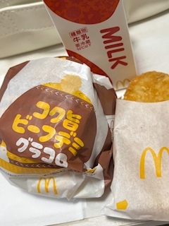 ゆかです😉 この前朝マックをUberで注文🩷 グラコロ🩷 朝マックのポテト久々食べたら 美味しかったです☺️ 今日は予想以上に寒すぎて… 一気に冬がきた☃️
