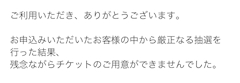 え、めっちゃ恥ずかしい。 なんか2件メールきてて 1件はチケット外れたメール も1件は当たったメール。 ブログのコメントで自分がチケットゲットしたことを知り歓喜!!!!!! 教えてくれてありがとうございます💗💗💗💗💗💗 まほってほんとにバカなんだからー🎶 もう今嬉しくて嬉しくて、、 外れた方のメールも載せておきます。 結果私はコンサートいけます😉 やっぱり運いいなあ〜! ひひひ