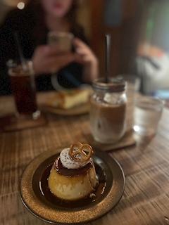 プリンは絶対固め。 ☕️ ここの生クリームはコーヒー風味だから甘すぎず美味しい。 帰りは40分このカフェから歩いて帰るから0キロカロリー❗️