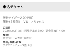 こんにちは! 今日は早起き頑張りました🥺 オープン戦のチケット発売だったのです!! 阪神vsオリックス ちゃんと取れました🙆♀️🙆♀️ なんか案外繋がったし取れたので ソフトバンクと巨人戦も 取りました🙂↕️ 京セラドームでのオリックス戦が 席良すぎちゃうので お姉ちゃんがめちゃくちゃ テンションあがってました😂 3月楽しみです🫶