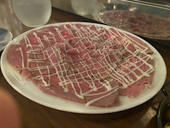 オズバーの堀代表とミーティングご飯~😋 焼きしゃぶポン酢 ハラミ~😋 赤ウインナー 私も飲んだら少食ですが堀さんもっと少食やから2人でご飯行くと絶対食べきれない😅 勿体無いけど残しました😵 2人ともお腹いっぱい食べましたよ😁 ご馳走様でしたo(^o^)o