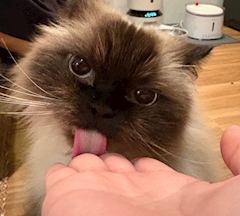 わが家の猫ちゃんです。最近なぜか私の手の上からしかごはんを食べません🐱 前まで自分でお皿から食べてたのに…手がかかるけど、可愛すぎて癒されてます。