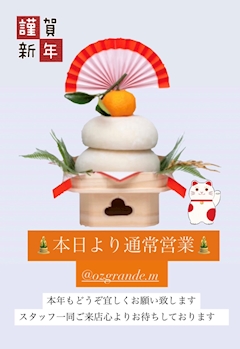 年始の営業は明日からスタートです。週末9(金)10(土)は恒例のえべっさんイベント 本年もOZ grandeをよろしくお願いします🙇♀️
