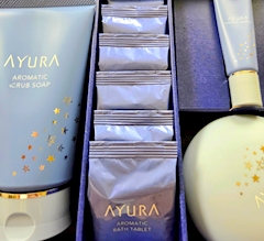 クリスマスコフレの時期がやってきてますね🥹🩵🩵 物を増やしたくないのでコスメはできるだけ我慢😣✊そして今年欲しいものもあまりなかった とりあえず10月くらいに予約したAYURAが早々に届いた🛁🫧 スクラブソープ、入浴剤、ボディクリーム、ナイトリップ✨✨ ボディクリームは沢山持ってるので私にプレゼントしてくれる方は入浴剤でお願いします