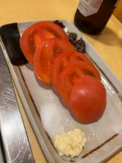 ゆかです😉 先日のゴルフ後の晩ご飯 近所のお好み焼き屋さんへ トマトスライス🍅 ぶた焼きそば ホタテバター焼き ミックスの洋食焼き 安定のおいしさ☺️ ごちそうさまでした😋 おやすみなさい💤